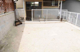 屋内には個室があり、屋外には6箇所に仕切られた、運動場付犬舎があります。