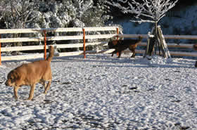 大型犬には別に、充分に走り廻れる運動場を設けてあります。